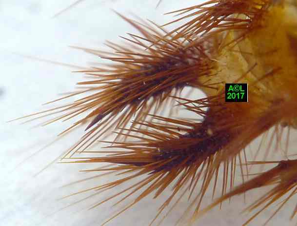 disposition "rayonnante" prise par les soies des urogomphes quand