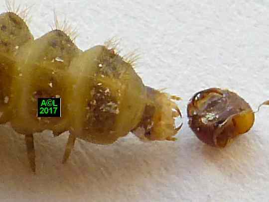 larve (exuvie d'une L4); photo 2 : tête de la
