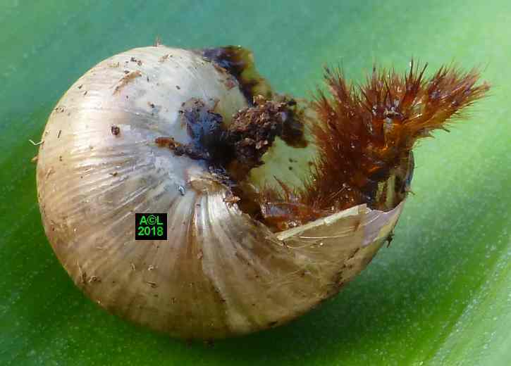 trouvé trace de l'exuvie, hormis au fin fond de la coquille