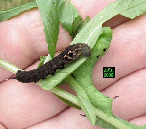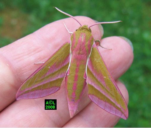 ... chromatique !Par-delà les termes de "voiliers" ou pis de "volateurs", je dirais que les sphinx volent à merveille, ce qui nous vaut la visite d'espèces migratrices, notamment d'Afrique du Nord. A titre d'exemple cela vaut pour le peu banal Sphinx tête de mort (Acherontia atropos) qui est connu pour pouvoir atteindre le pôle nord ... fusse très exceptionnellement !