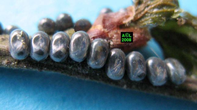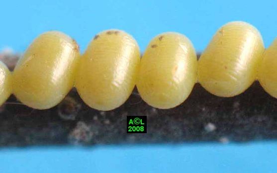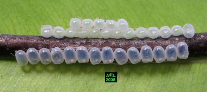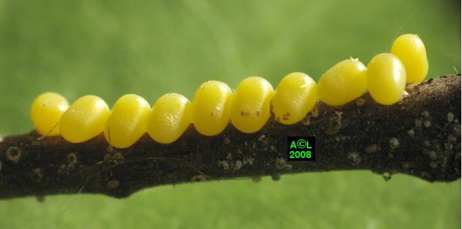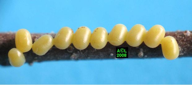 branchettes de l'arbre nourricier. Les oeufs sont jaunes,