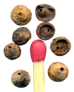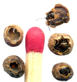 larves. 2)- trous de sorties. 3)- loges vides, et