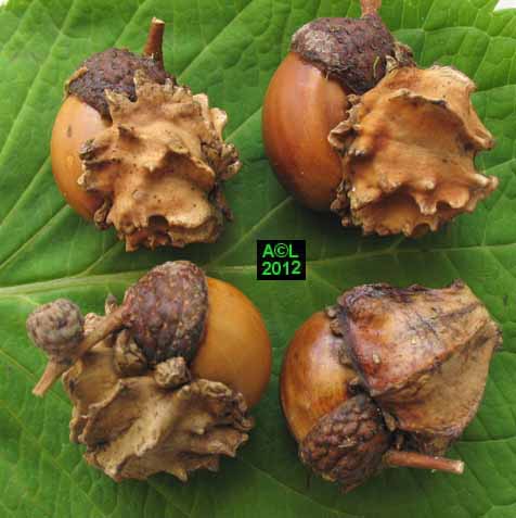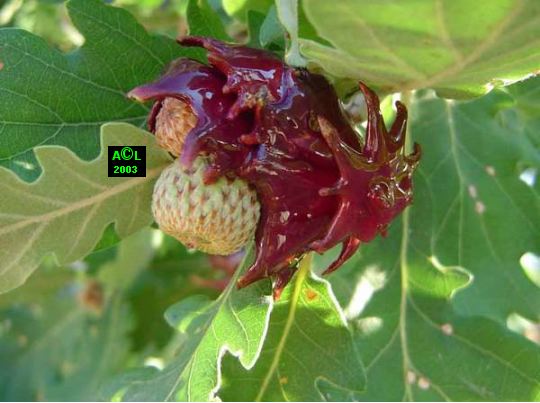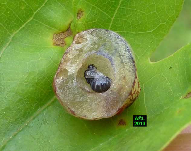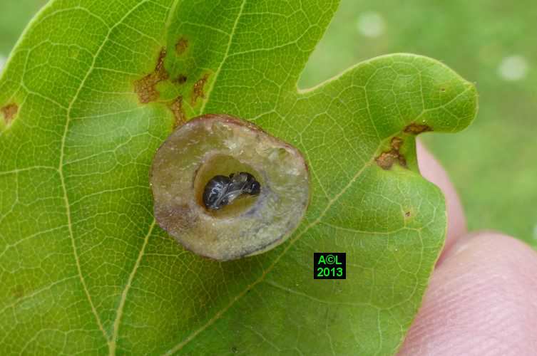 Je ne sais si c'est la norme, ou s'il s'agit d'une simple tendance, mais les 5 galles présentement trouvées se développent autour et alentours de galles sexuées de Neuroterus quercusbaccarum, au point de parfois les englober. Si cette localisation n'est pas totalement fortuite, comme j'incline à le penser, je m'interroge sur les éventuelles incidences de cette "cohabitation": indifférence ? simple tolérance ? "échange de bons procédés" ? concurrence ? ... that is the question !