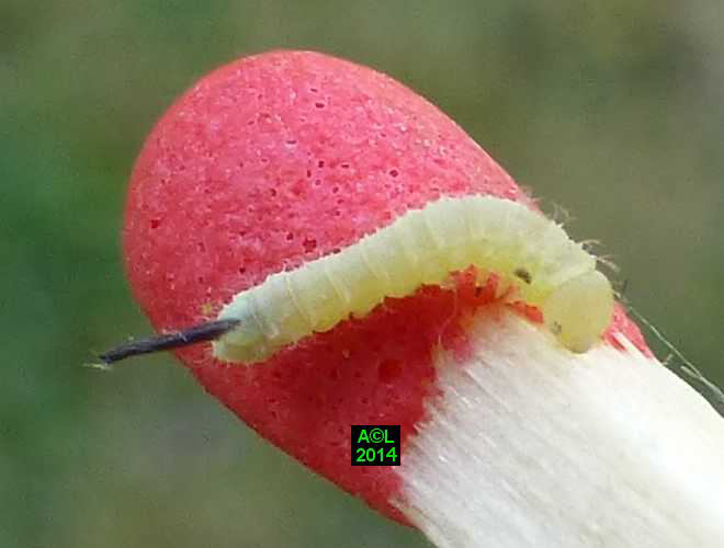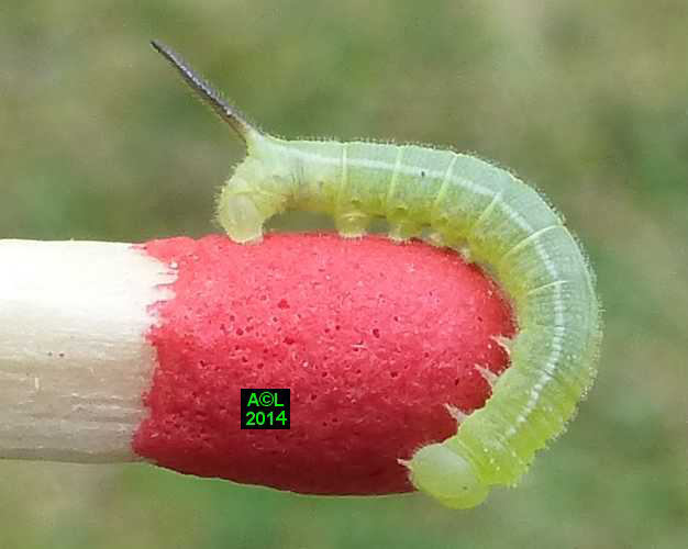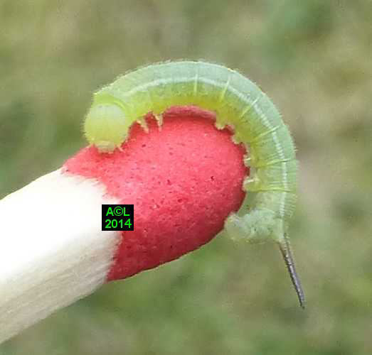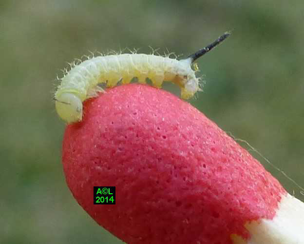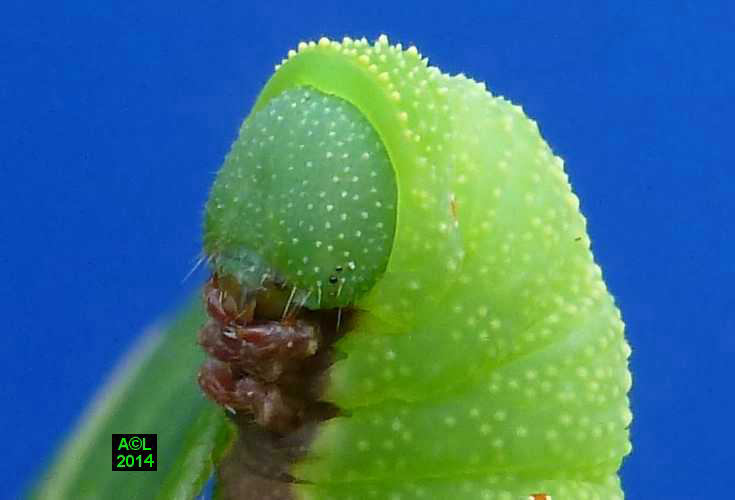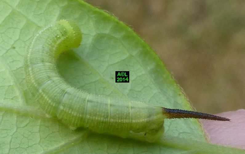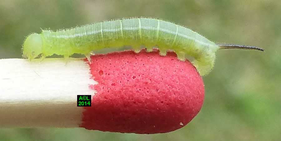 Là où le papillon fait preuve d'une réelle originalité morphologique, la chenille s'avère au contraire fort banale. Elle se contente en effet de grossir, et cela sans guère varier de livrée lors des 4 mues l'acheminant progressivement au terme du développement larvaire. Ce dernier est généralement bouclé en l'espace de 5 à 6 semaines et le très sommaire "coconnage" est précédé d'une phase pré-nymphale, aussi brève que classique.