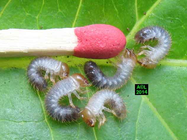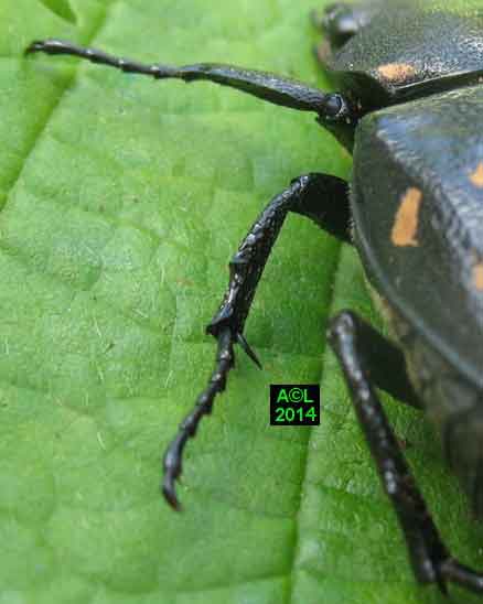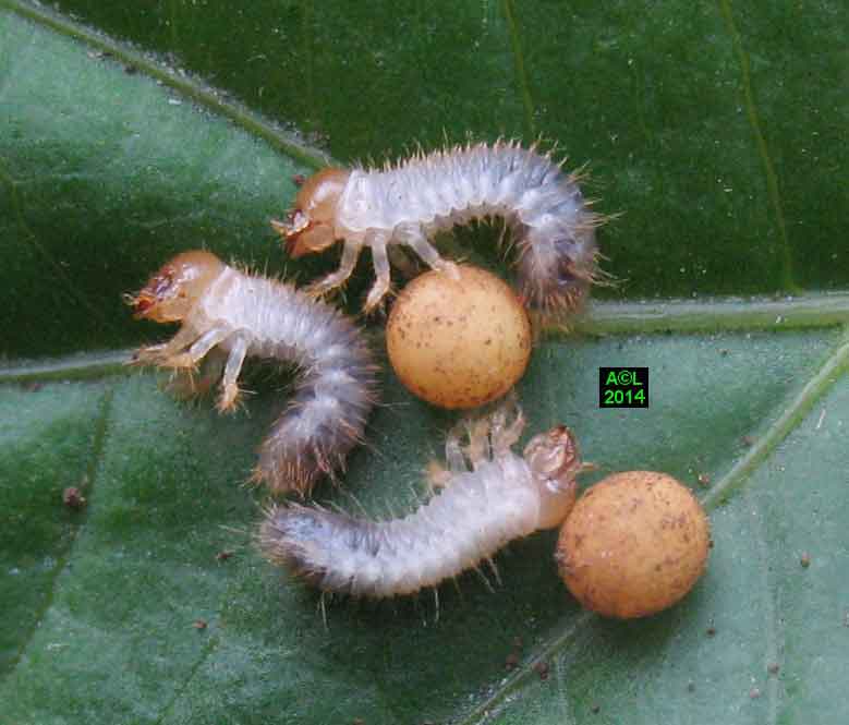 Ce faisant, il s'ensuit une bonne protection, d'où un nombre d'oeufs relativement faible, de la même façon qu'une "casse" importante (prédation par exemple), est classiquement compensée par une ponte numériquement élevée. Faute d'avoir pris le temps de le vérifier, j'avoue ignorer le nombre des oeufs pondus par les Gnorimus mais je pense pouvoir le situer aux alentours d'une cinquantaine d'unités.