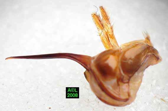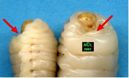 droite: tête de larve; mise en évidence du
