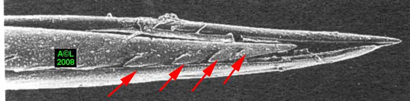 Remarquer les "barbules" (flèches)