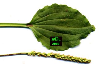 plantain (Plantago major); à droite: plantain