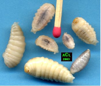 - larves à divers stades,