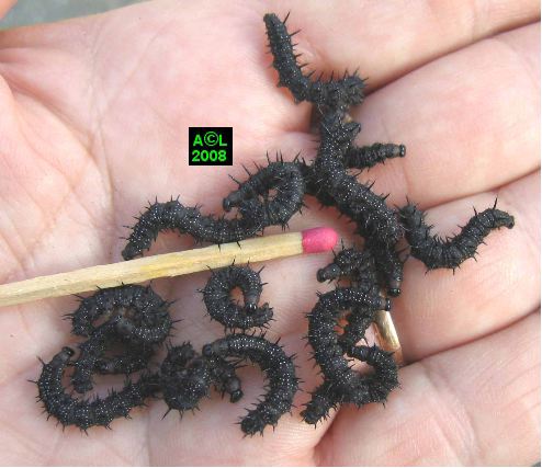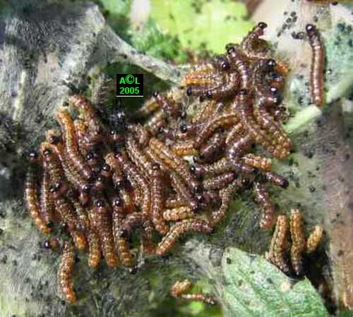 la coloration des jeunes chenilles vire au brun, en passant par le