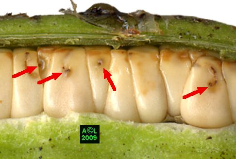 rostre pour forer l'enveloppe de la gousse, jusqu' à