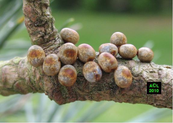 "aiguilles" du pin, ou encore sur les fines branchettes