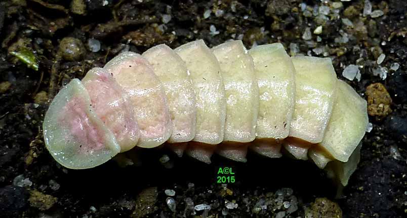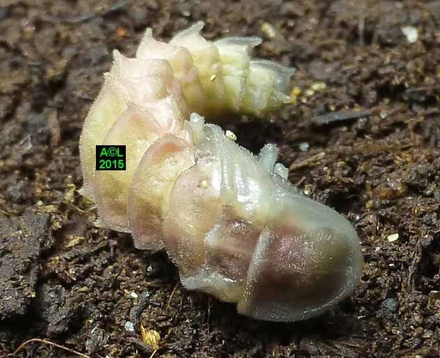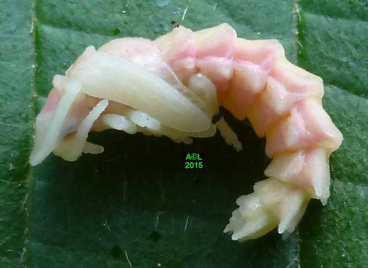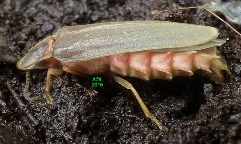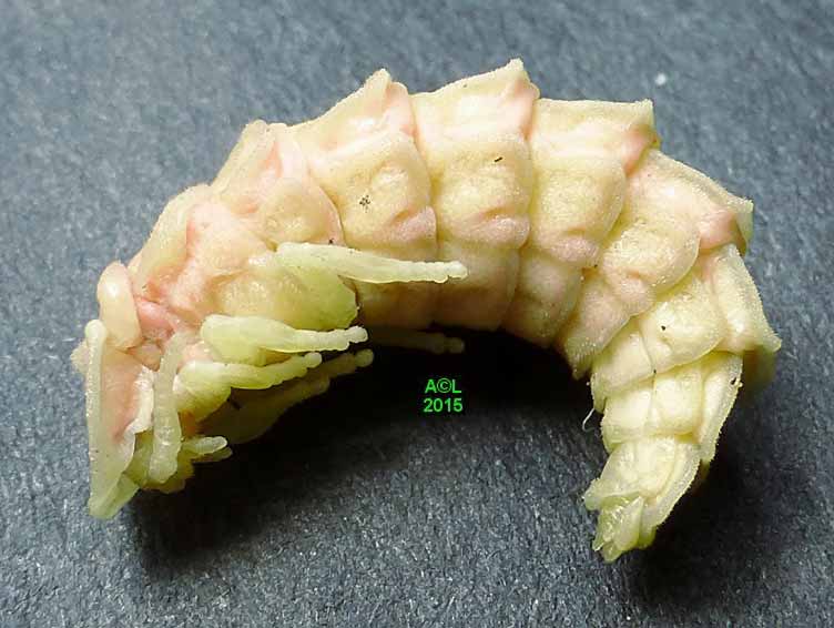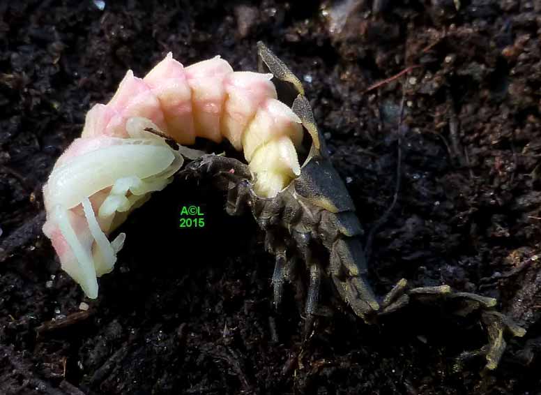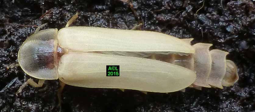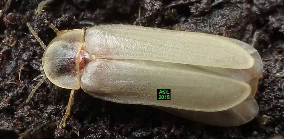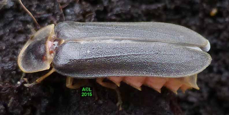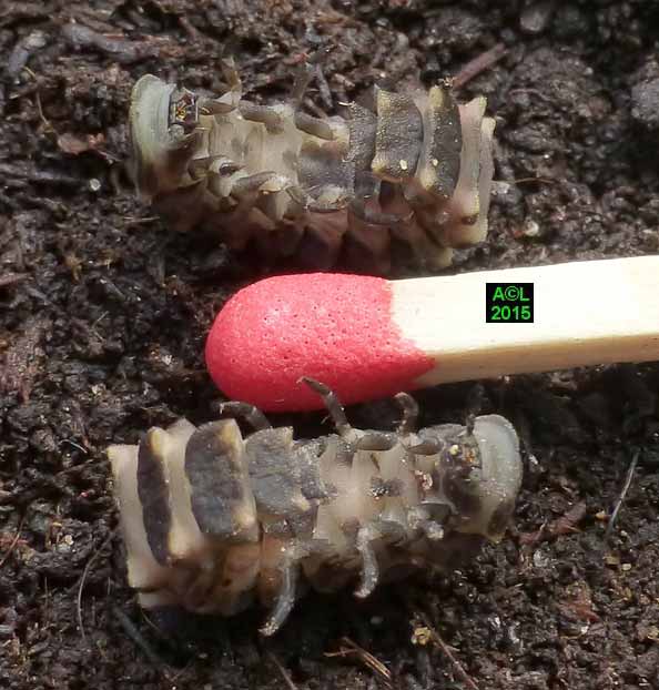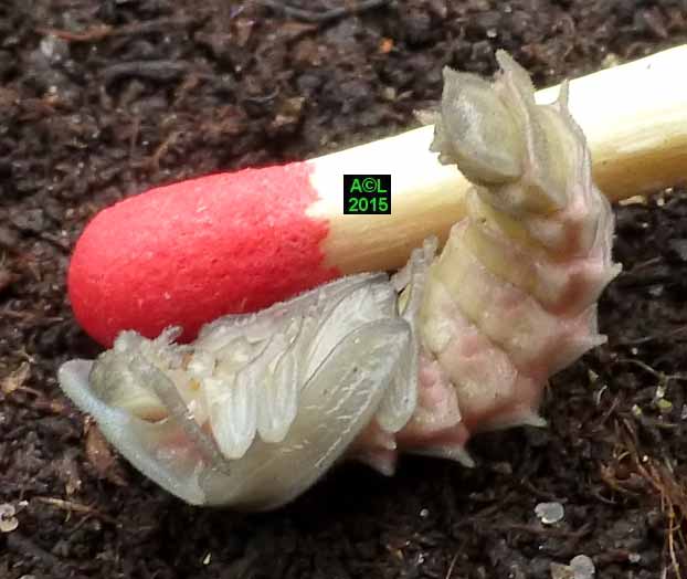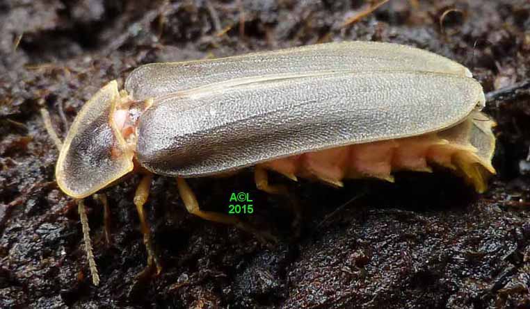 Le moment venu, et donc au terme de son développement, la larve va rechercher un "dessous de quelque chose" en contact avec le sol , tel que bois mort, pierre ou mousse. Profitant d'un creux (ou l'aménageant ? ) elle va ensuite s'y immobiliser sur le dos durant une dizaine de jours, en attendant que Dame Nature "fasse son boulot" et déclenche la mue nymphale. Ultérieurement, quand le temps aura là encore fait son oeuvre, la dernière mue (dite imaginale) va avoir lieu, et donner cette fois une femelle lampyre adulte, et donc apte à "lumignoner" ... et se reproduire !