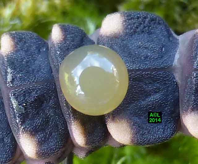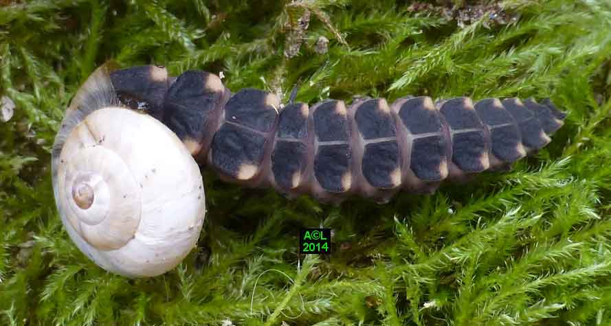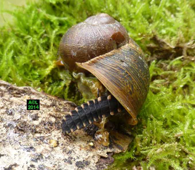 Grand consommateur d'escargots, mais aussi de visqueuses limaces (en net 2e choix me semble-t-il !), le Lampyre marque là encore sa différence en usant d'une technique pour le moins originale, et quasi chirurgicale. Il anesthésie en effet ses proies avant de les consommer, et il s'agit bien d'une anesthésie car les escargots en question sont susceptibles de "récupérer". Bien entendu il ne faut pas laisser le Lampyre passer à table, car c'est un adepte de la digestion extra orale, et à ce titre il liquéfie littéralement les tissus de sa victime avant de les absorber. Cette précision apportée, l'anesthésie en question est si efficace, et si subtilement instillée, que les quelques morsures infligées à cet effet paraissent d'aimables bécots, et ne provoquent aucune réaction de défense de la part de la victime ( rétraction dans la coquille, ou émission de mucus par exemple). Ces dernières demeurent toutefois possibles avec des proies de grande taille, mais il en faut plus pour éviter ... le "passage à la casserole" !