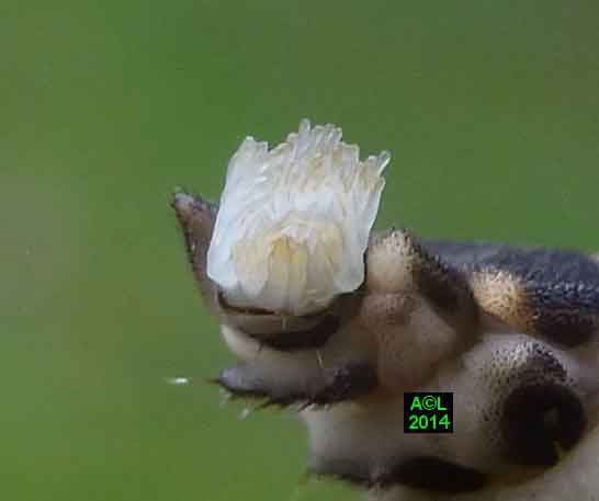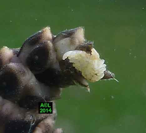 Plus qu'un long discours cette édifiante vidéo vous montrera la bête à l'oeuvre, et vous pourrez apprécier l'efficience et la précision de ce peu banal toilettage. Vous noterez la capacité des tentacules à retirer ce qui doit l'être, quitte à devoir véritablement l'arracher, et l'effort fourni est visiblement patent. Les salissures ainsi récoltées et amassées sont ensuite "abandonnées" par le biais d'un bref frottement des tentacules sur le substrat environnant, un peu comme nous nettoyons des bottes boueuses en les passant dans l'herbe ... efficacité et rapidité en sus ! Pour conclure vous noterez la convergence de ces tentacules ( forme et usage ! ) avec un "balai à franges" (ci-dessous figuré), nouvelle preuve, si besoin était, que les inventions humaines sont avant tout celles de la Vie et de la Nature.
