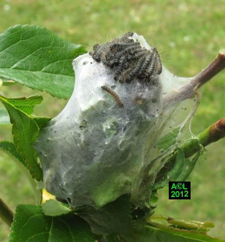 mini-nid, avec la première chenille en L5 (au milieu ! ) et