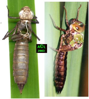 libellules, et à droite mue en cours