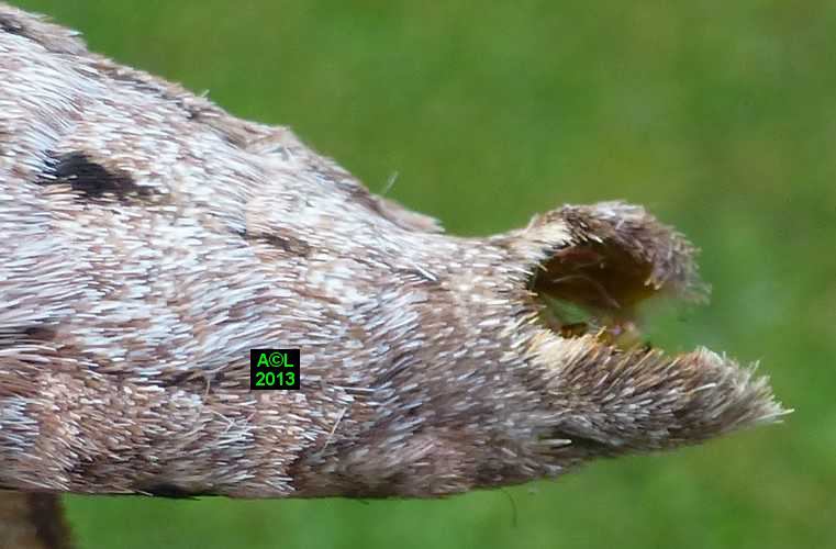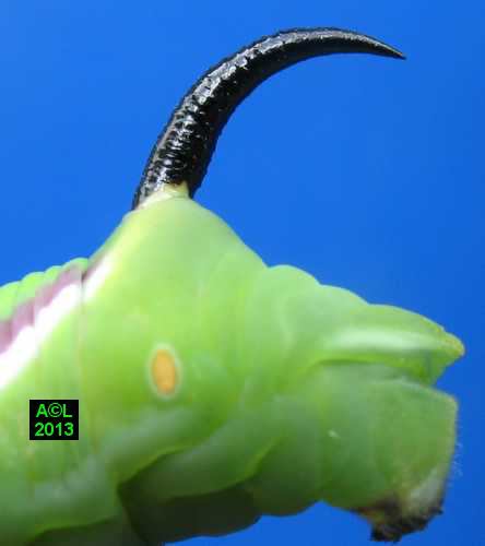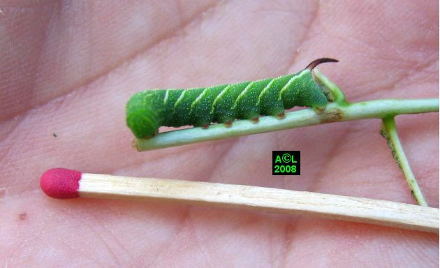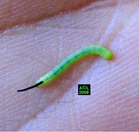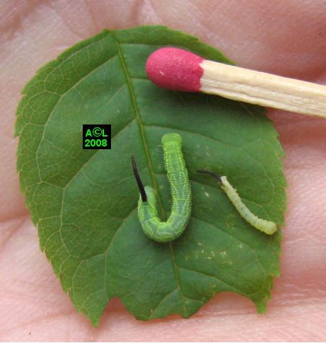 Quelque soit l'espèce, le suivi des 5 stades larvaires d'une chenille n'est pas toujours évident. C'est encore plus vrai quand la livrée de la bestiole est du genre "invariable", ou que vous menez plusieurs élevages de front. C'est là mon lot quotidien, et en plus je vous fais grâce des coléoptères et autres "pensionnaires" à 6 pattes. Pour cette chenille vous devrez donc vous contenter d'un suivi plus chronologique que biologique, cette simplification préservant bien sûr l'essentiel.