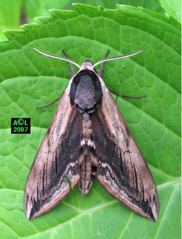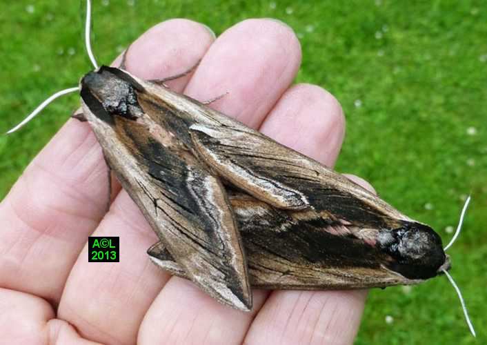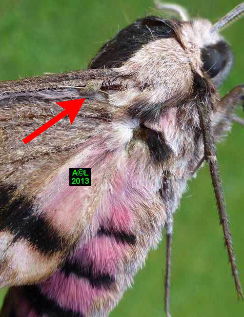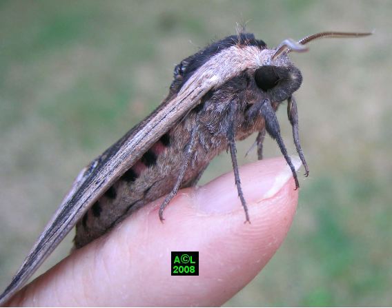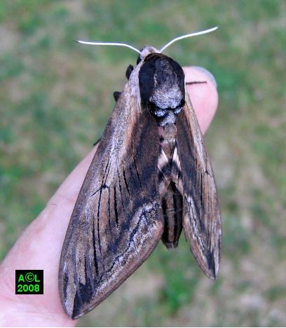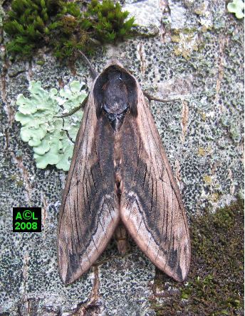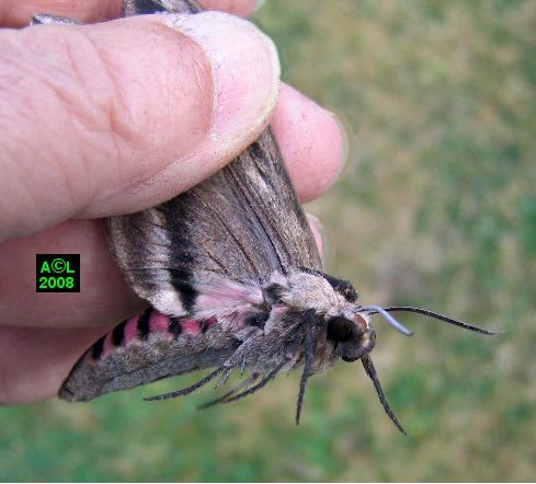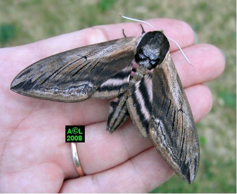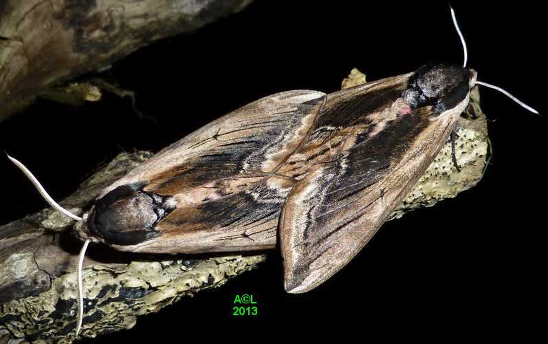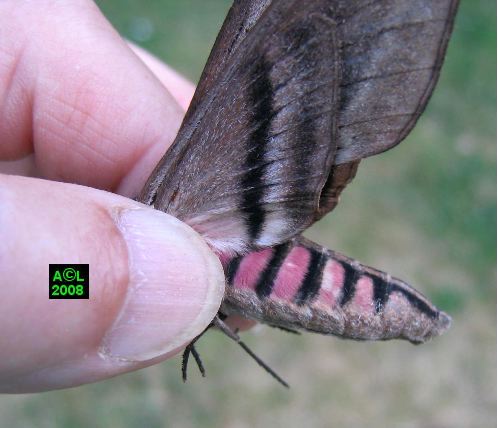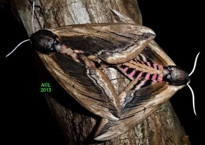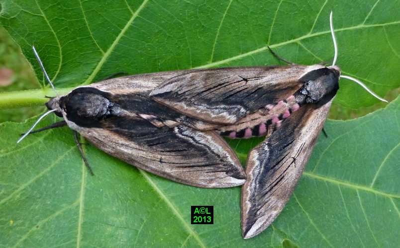 Comme chez la plupart des Sphinx, le dimorphisme sexuel est plus que discret, voire nul pour le profane. Les femelles sont en principe plus grandes, et l'abdomen logiquement plus volumineux, mais ce n'est pas toujours évident quand la ponte est bien avancée. Par opposition l'abdomen des mâles est plus pointu et il se termine par 2 valves génitales accolées qu'avec un peu de chance vous verrez s'ouvrir ... et se refermer !
