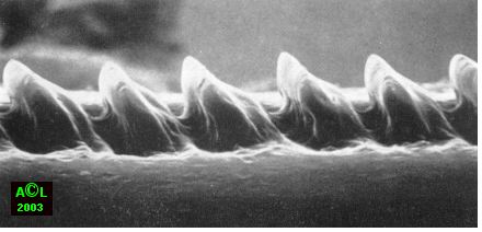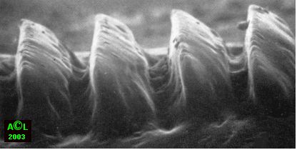 pars stridens) de Tettigonia viridissima, en microscopie à