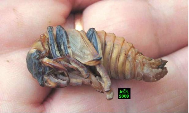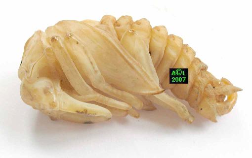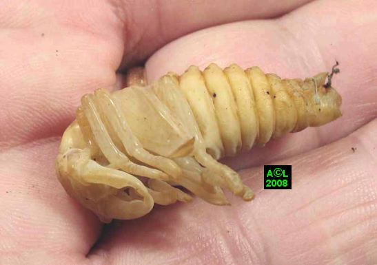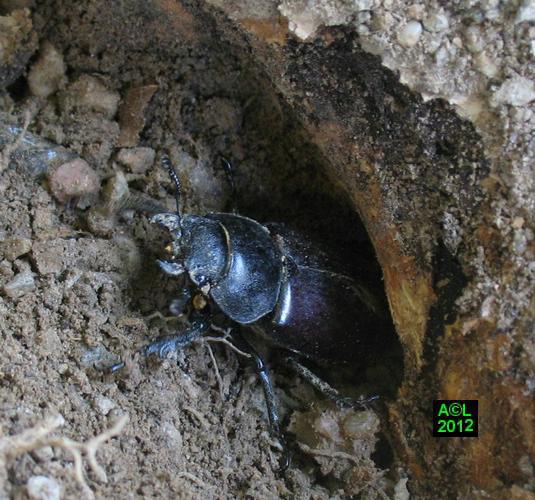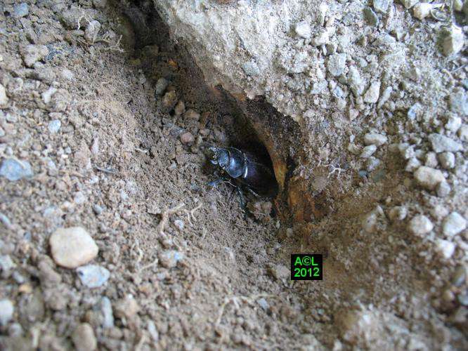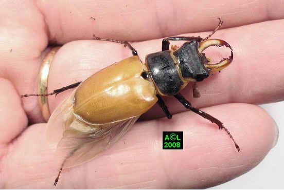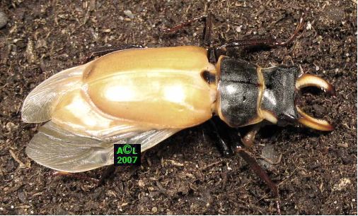 ..... c'est vrai !Ces insectes étant très fréquemment la proie des rapaces nocturnes, les grandes allées forestières sont parfois jonchées de restes de Lucanes mâles. Le plus souvent il s'agit de têtes et de thorax encore unis, comme ci-dessous, suite à la section de l'abdomen, seule partie à l'évidence consommable.