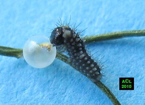 "chenillette" se fait les mandibules sur le chorion de l'oeuf,