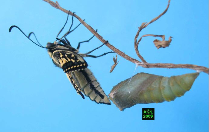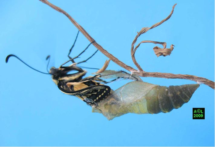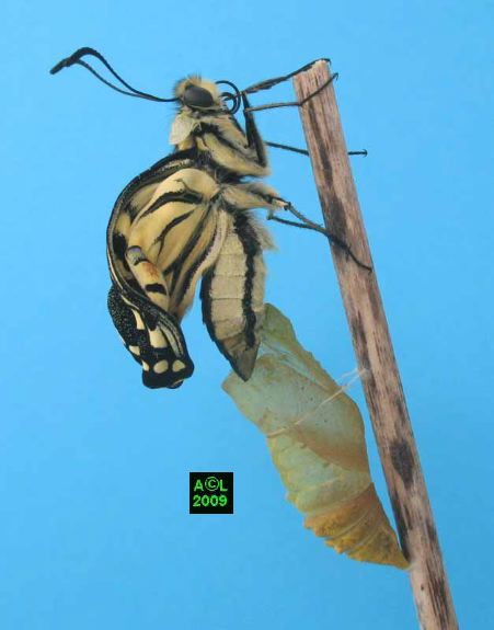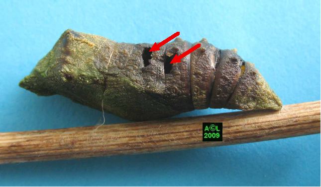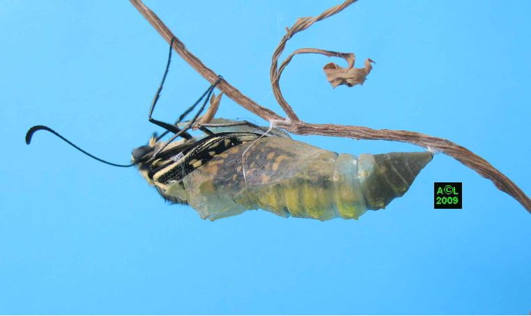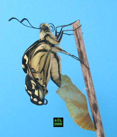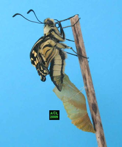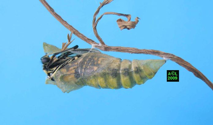 et commencent a se colorer tout en durcissant; 4)- pupes au