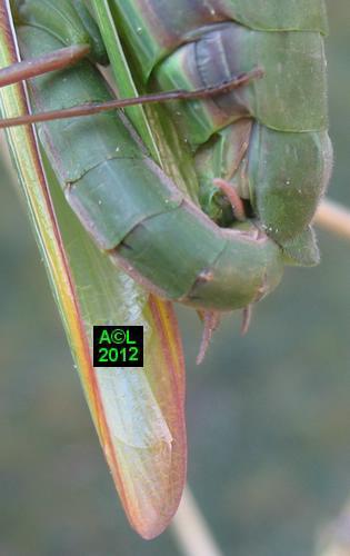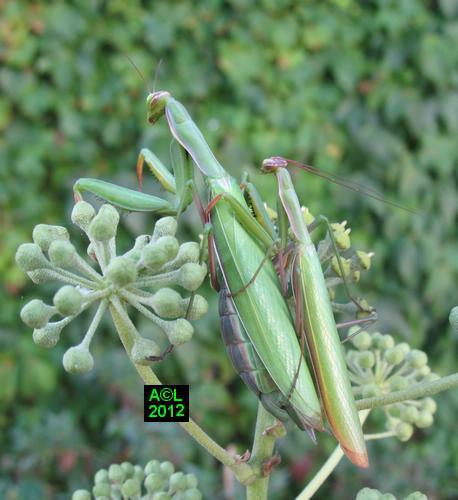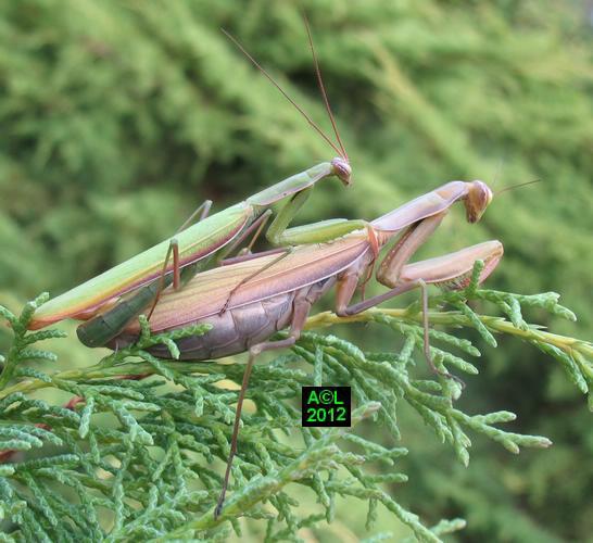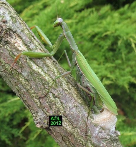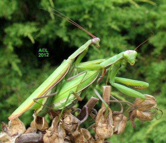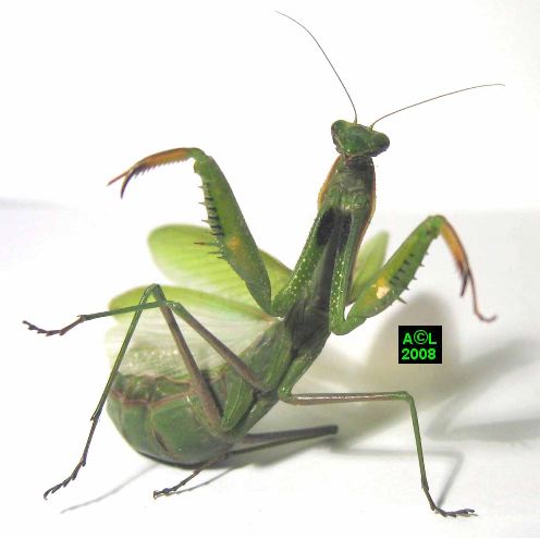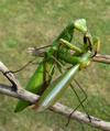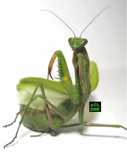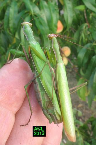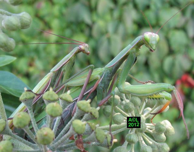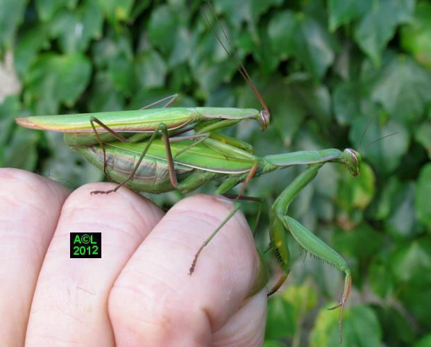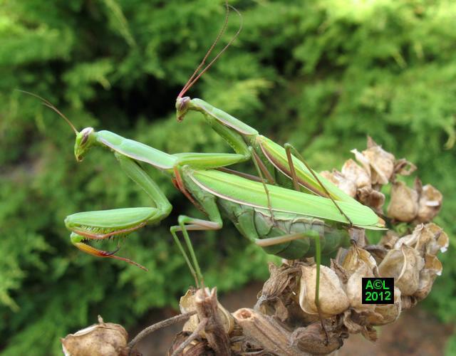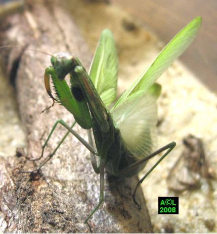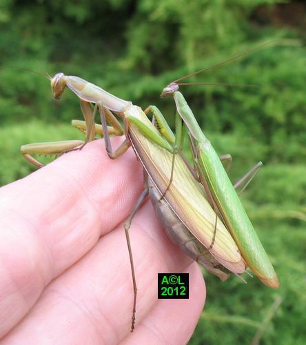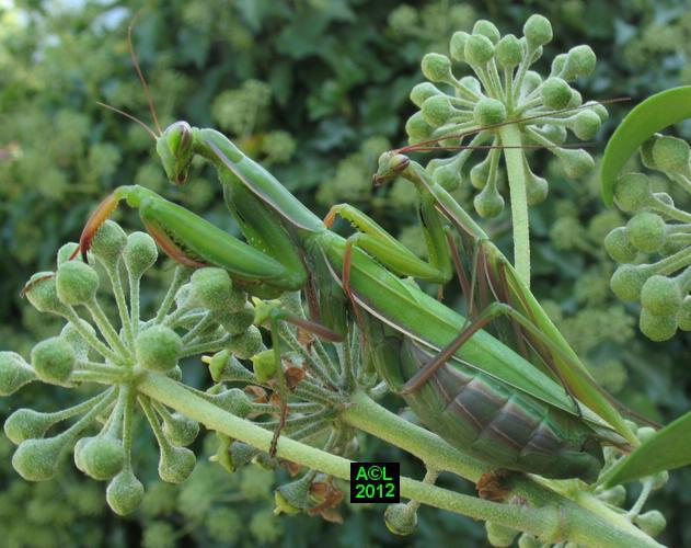 Au pays des mantes religieuses les amours peuvent également s'avérer fatales pour le mâle, mais c'est loin d'être systématique, l'envol salvateur prévalant le plus souvent. Cela dit notre mâle n'a pas intérêt à "s'endormir sur ses lauriers", et encore moins à demeurer à portée des pattes ravisseuses de sa partenaire. Le "passage à table" ( si je puis dire ! ), est d'autant plus spectaculaire qu'il peut intervenir alors que les bestioles sont encore accouplées, mais cela est à mon avis peu fréquent et reste sans doute subordonné à un ventre particulièrement affamé.