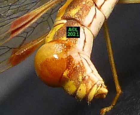 Il est à la fois morphologique, comportemental, et bien sûr physiologique. Au niveau morphologique le dimorphisme porte avant tout sur l'ampleur abdominal des femelles, sachant que la stature générale des deux sexes ne constitue pas un critère, du moins chez les mantispes. En d'autres termes une grande mantispe n'est pas forcément femelle ... et une petite n'est pas toujours mâle ! Comme les illustrations ci-dessous le montrent, les extrémités abdominales sont logiquement les plus "parlantes", notamment au niveau ventral (sternites) mais bien sûr une loupe s'impose, encore qu'un oeil exercé puisse distinguer la pointe des cerques ... ou "jauger" le profil abdominal !