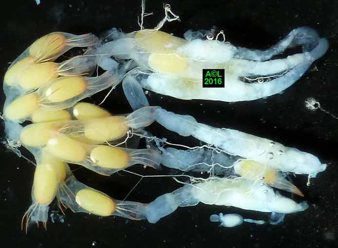 ovaires et ovarioles, avec oeufs "in situ", à droite