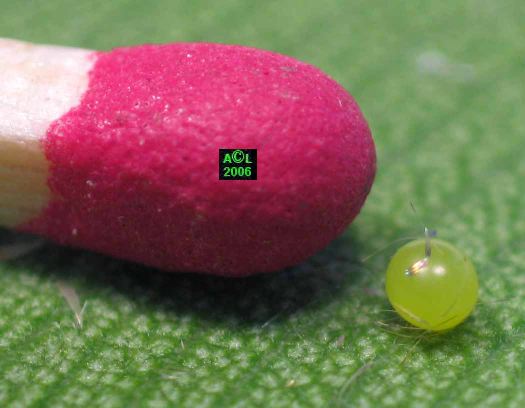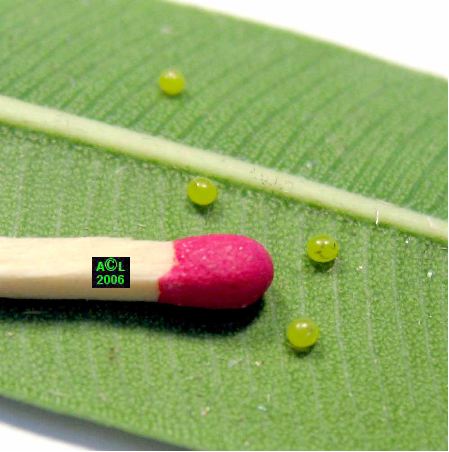 verts, les oeufs sont pondus isolément sur les feuilles de