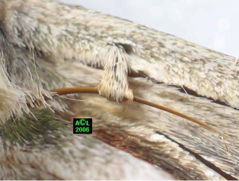absence, la soie nue (4 à 5 mm chez nerii) est