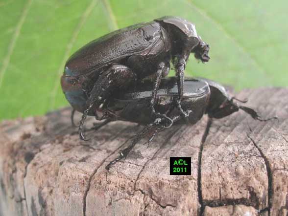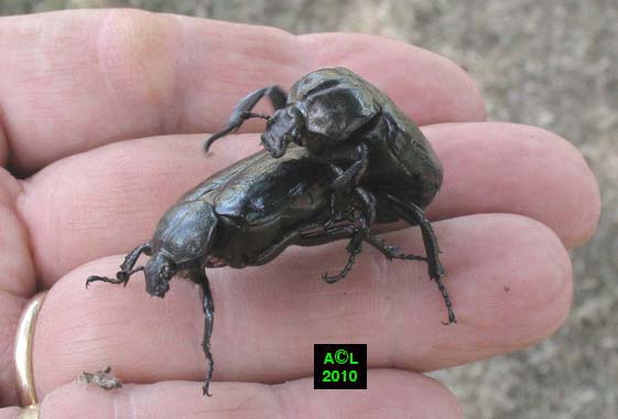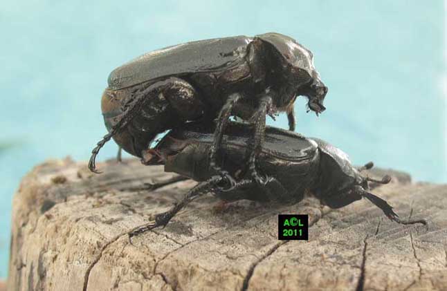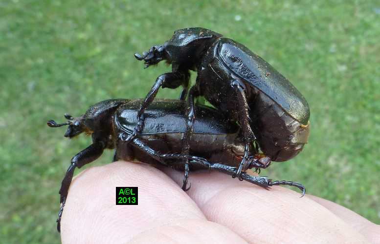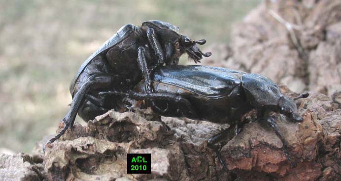 Lors d'un voyage touristique en Bulgarie (2013), j'ai eu la chance de tomber sur un accouplement " pique-prunier ". C'était à Bansko (*) dans la très grande cavité d'un noyer hors d'âge, et cela à deux pas de grands immeubles. Sans doute " rassurées " par la semi pénombre régnant dans ladite cavité, les bestioles copulaient à la surface du terreau !