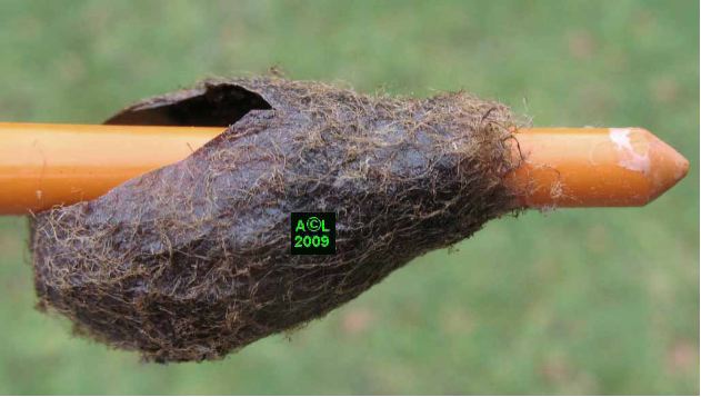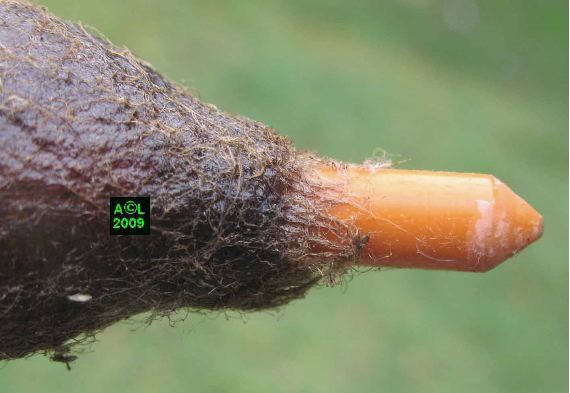 l'arbuste, ou l'arbre nourricier. Le cocon, toujours piriforme, a