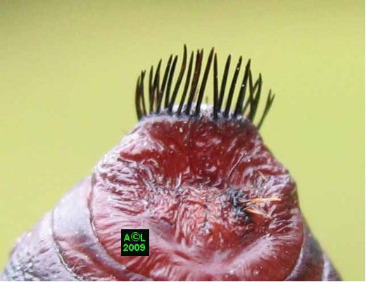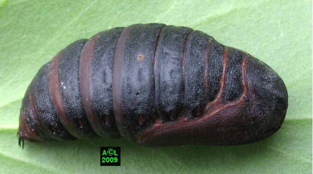 1)- chrysalide "in situ"; 2)- chrysalide isolée,