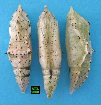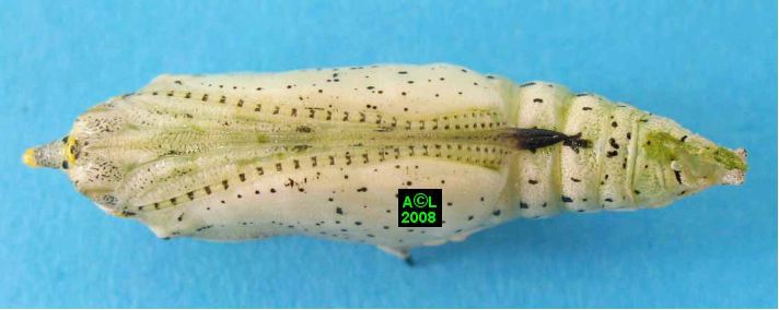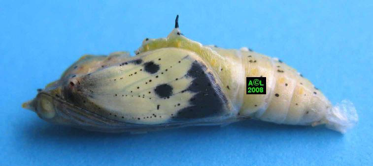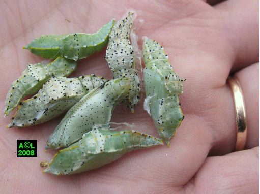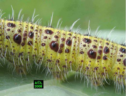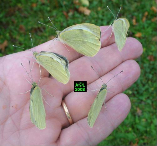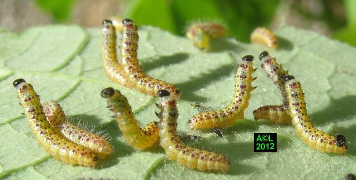 Sur les capucines garnissant un muret du jardin, de jeunes chenilles de piéride du chou ont attiré mon attention. Regroupées au revers ombragé d'une grande feuille, elles se tenaient dressées à la manière des cobras, et se balançaient rapidement en tous sens, donnant l'impression de vouloir dissuader un agresseur ... manifestement inexistant ! Je n'avais jamais vu pareil comportement, mais l'évidence s'est vite imposée. En effet, si Dame Nature a prévu des antigels cellulaires pour les insectes hivernants, elle a manifestement fait l'impasse sur la "clim" ... charge aux bestioles de se débrouiller !