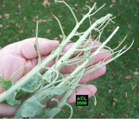 Contrairement à la chenille de la noctuelle du chou (Mamestra brassicae), qui elle s'attaque au coeur même de la plante, notre Piéride se contente en quelque sorte des alentours, autrement dit des feuilles périphériques, et donc des parties généralement non commercialisées. En fait les nuisances proviennent surtout de l'accumulation des excréments dans les plis et replis de la plante, et de leur dilution par la pluie ou la rosée, ce qui génère des souillures pouvant rendre le légume impropre à la consommation.