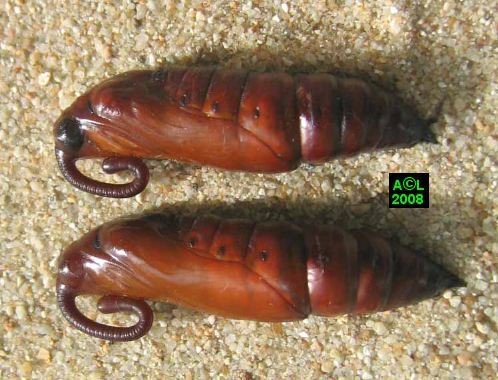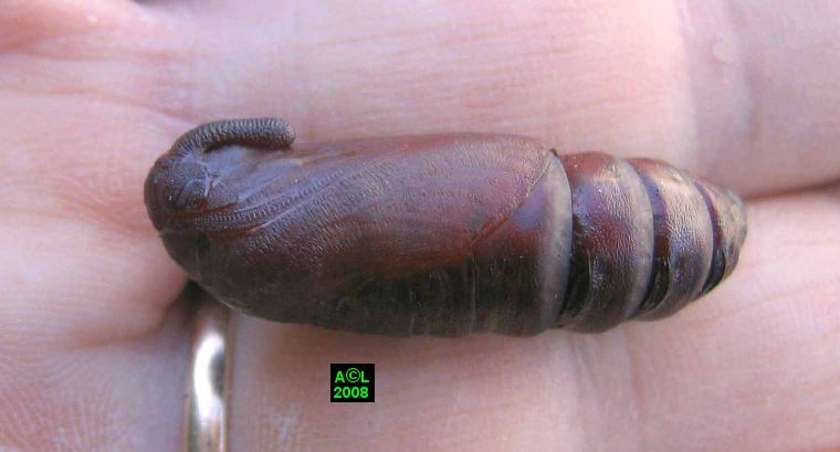 chrysalide du Sphinx du liseron (remarquer le surprenant