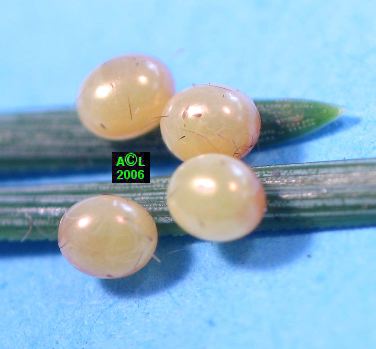 oeufs de pinastri; à droite: oeuf de Sphinx du