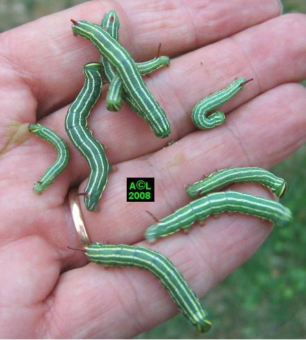 la chenille descend à terre pour s'y nymphoser, ce qu'elle