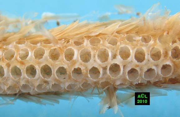 face interne d'une ponte décollée d'un fin rameau.