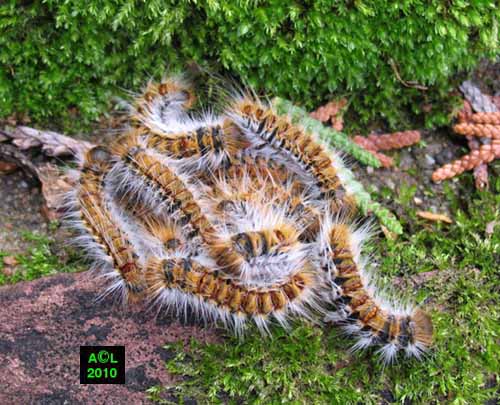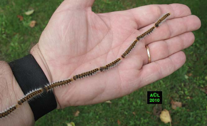 Par-delà les interrogations ci-dessous exprimées, cet avant dernier stade (il y en a 5) marque la fin du développement pré-hivernal. A ce stade les chenilles sont déjà de belle taille, leur forte pilosité étant peut-être à considérer comme une protection supplémentaire contre le froid. Le poils urticants sont en grande partie acquis, et fonctionnels, mais comme vous le verrez ils n'ont strictement rien à voir avec les poils en quelque sorte "visibles".