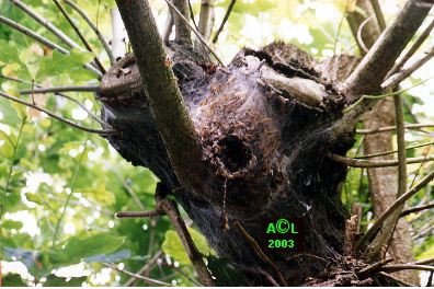 2)- Exemple de nid, au niveau de coupes d'élagages (vue