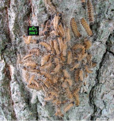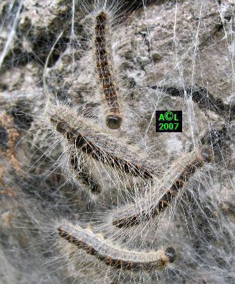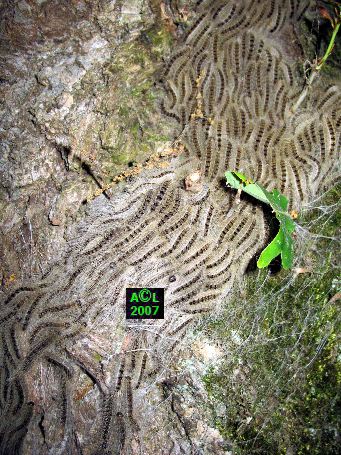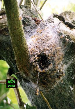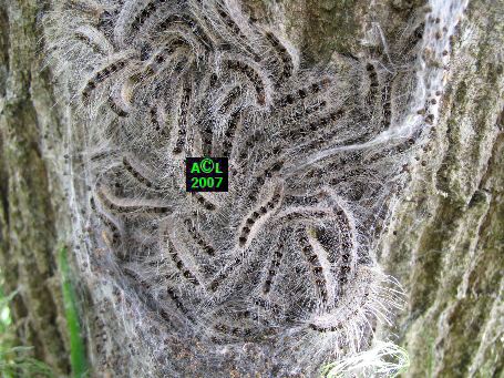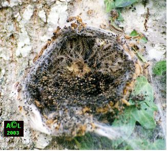 nid ouvert permet de voir le "crottoir" (en bas); les chenilles