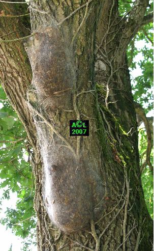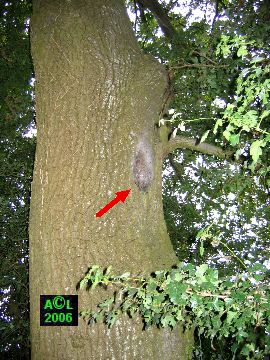 et classiquement plaqué contre un tronc. Remarquer la piste