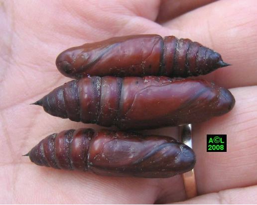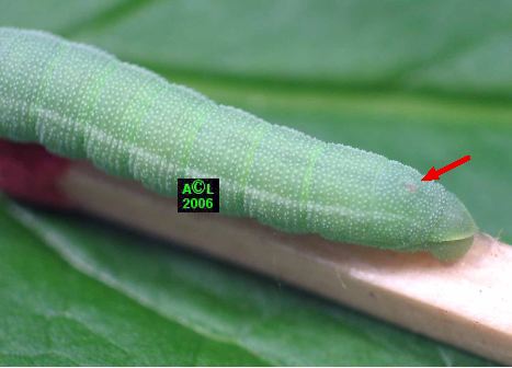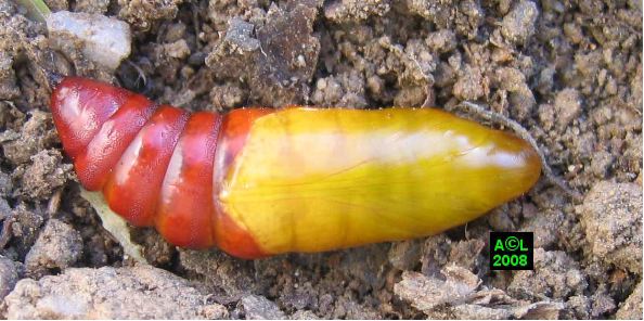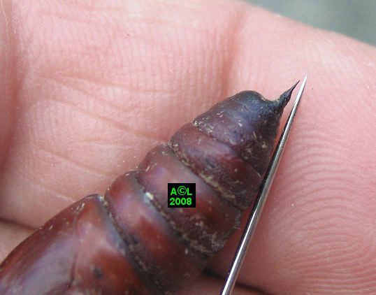 Sphinx du peuplier, le "crémaster" prolongeant l'abdomen