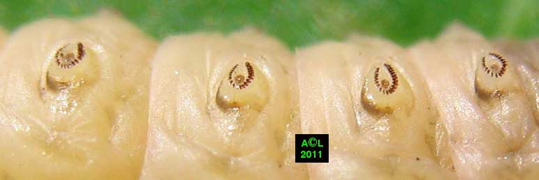 détail des pattes abdominales de la chenille montrant les