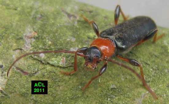 Le Pyrrhidium sanguineum (= "Callidie sanguine", = "Callidie rouge sang"), a le don de faire irruption dans votre quotidien sans crier gare. De surcroît il se manifeste au sein même de votre maison, et pour comble au quasi coeur de l'hiver quand vous êtes douillettement installé au coin du feu !
