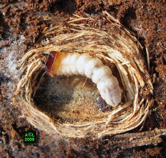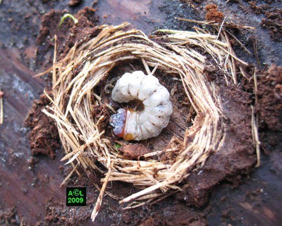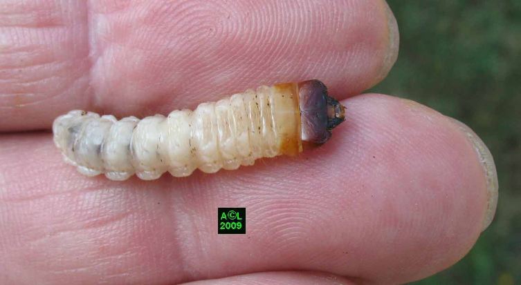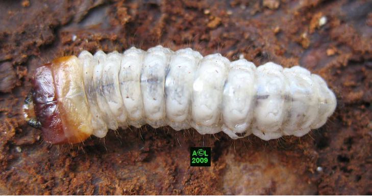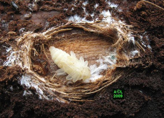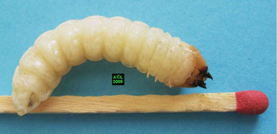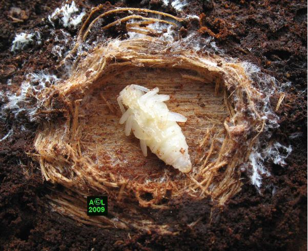jusqu'à atteindre la larve du coléoptère, et