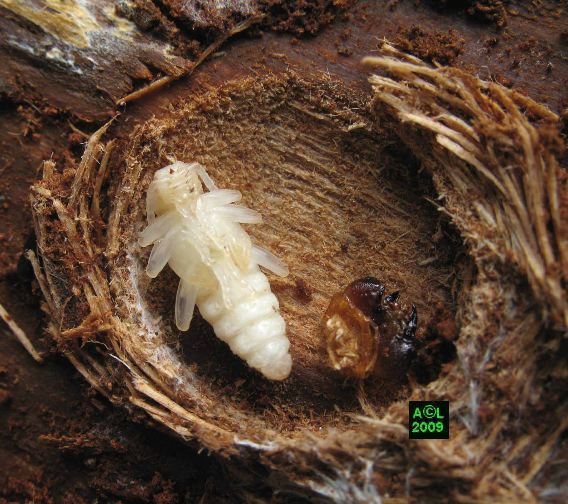 inquisitor la larve vit en plein bois, d'où une tête